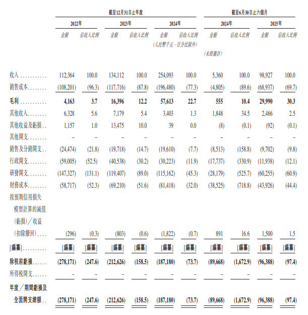 亏损的主要原因包括:持续投入研发资源、主要由优先权股份相关赎回负债产生的利息支出及借款与租赁负债相关利息成本构成的大额财务费用,以及商业化初期运营费用超过毛利。